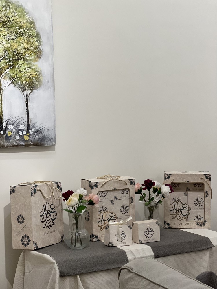 توزيعات العيد السعيد🎁🎉🎊 عبارة عن ١٢ حقيبة 👜 فاخرة مكوناتها قِطعَة من عود الرقائق الزهري العطري الماتع، و٣٠ جرام من بخور المستكى الجميل الفوّاح🌿